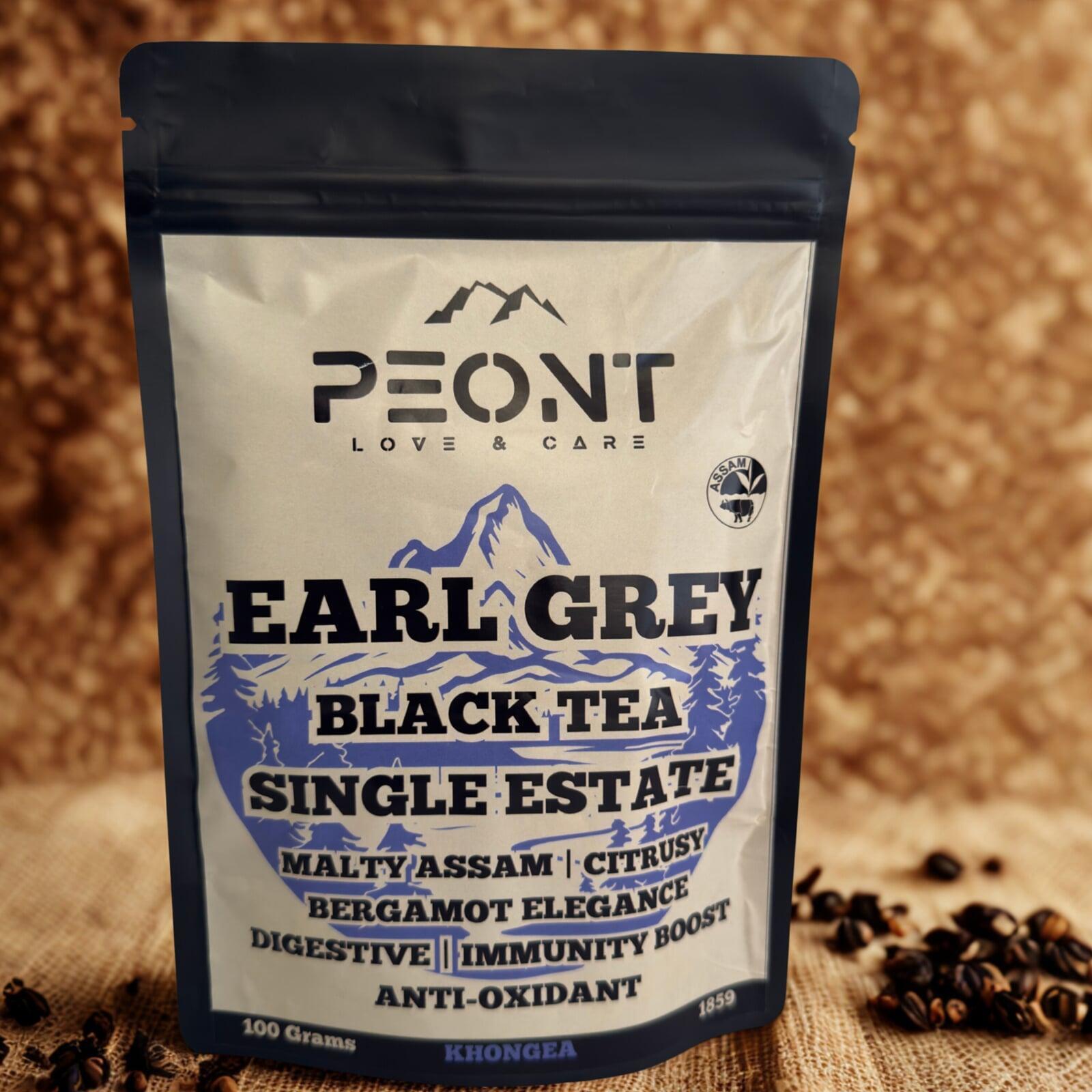 Assam pure black tea infused with zesty bergamot. This crisp, citrusy blend balances bold tea with refreshing notes, making it a sophisticated choice for Earl Grey enthusiasts.
